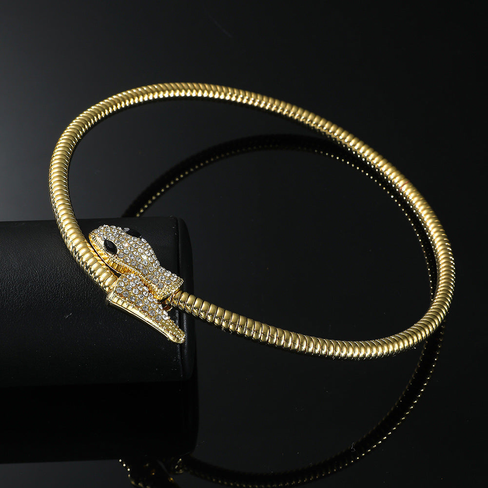Make a bold fashion statement with this Rhinestone Snake Choker Necklace, designed to bring an edge of sophistication and attitude to your look. Crafted from high-quality alloy and encrusted with shimmering glass rhinestones, this snake-inspired pendant captures light beautifully while symbolizing strength and transformation. The electroplated finish ensures lasting shine, while the adjustable clavicle chain offers a comfortable fit. Whether you’re dressing up for a concert, party, or street-style shoot, this choker adds the perfect punk-luxe touch. Handpicked from Abroad, this statement necklace combines trendy craftsmanship with global flair—ideal for fashion lovers who dare to stand out.