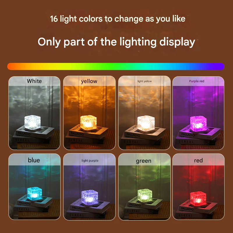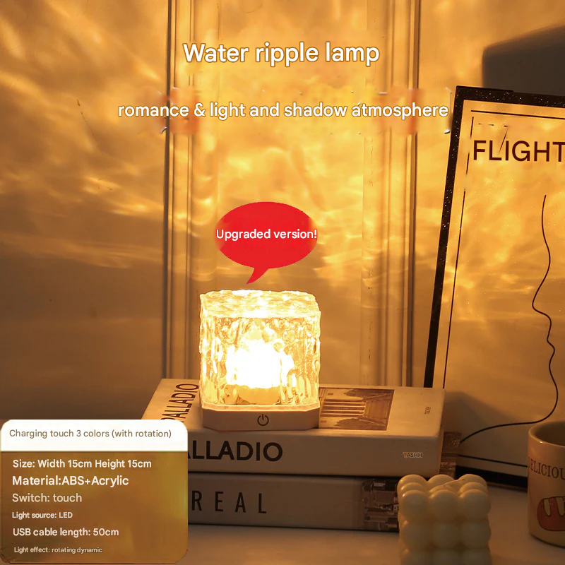 With both charging and plug-in options, this elegant, light luxury-style lamp is made from durable acrylic and includes a built-in battery for portability. Its compact 7.5cm design fits easily on nightstands or desks while casting vibrant, rotating light that creates a calming ambiance for sleep or relaxation.
