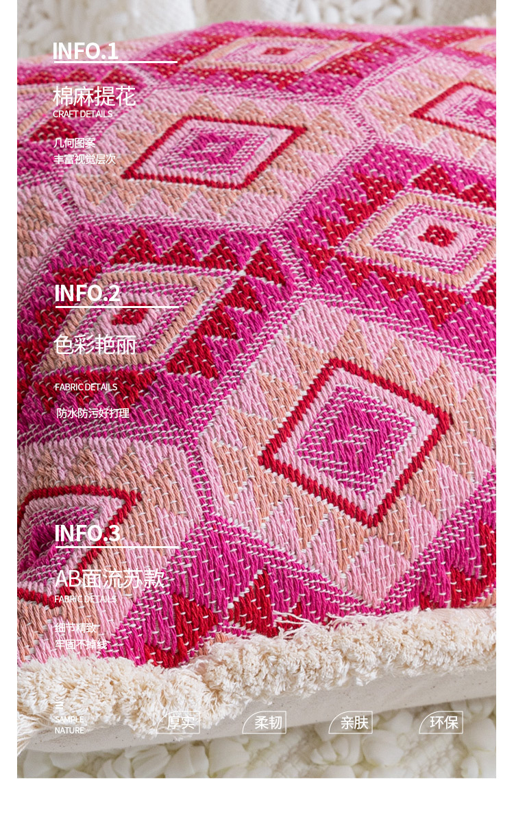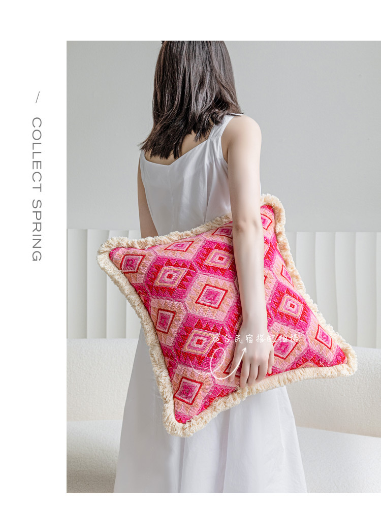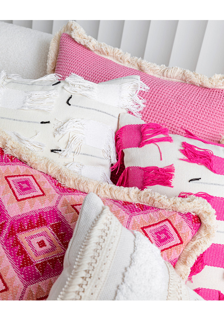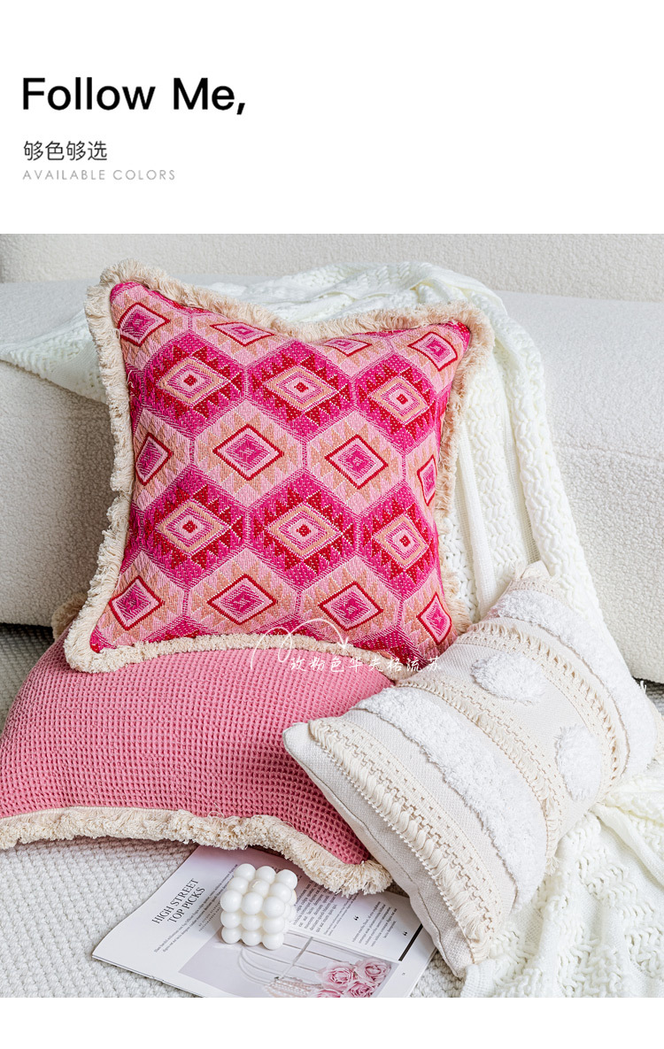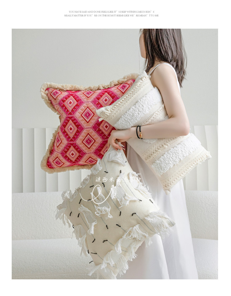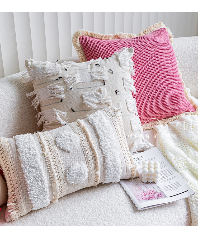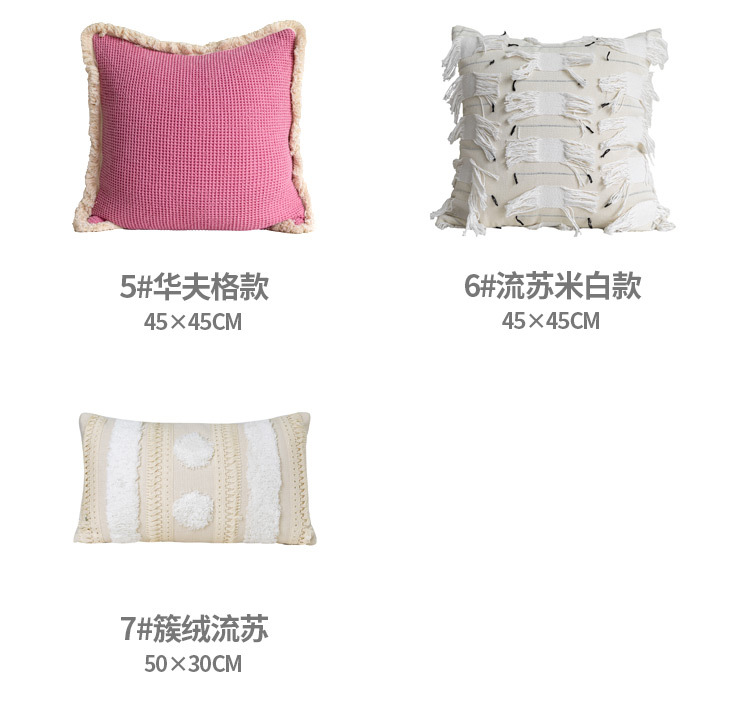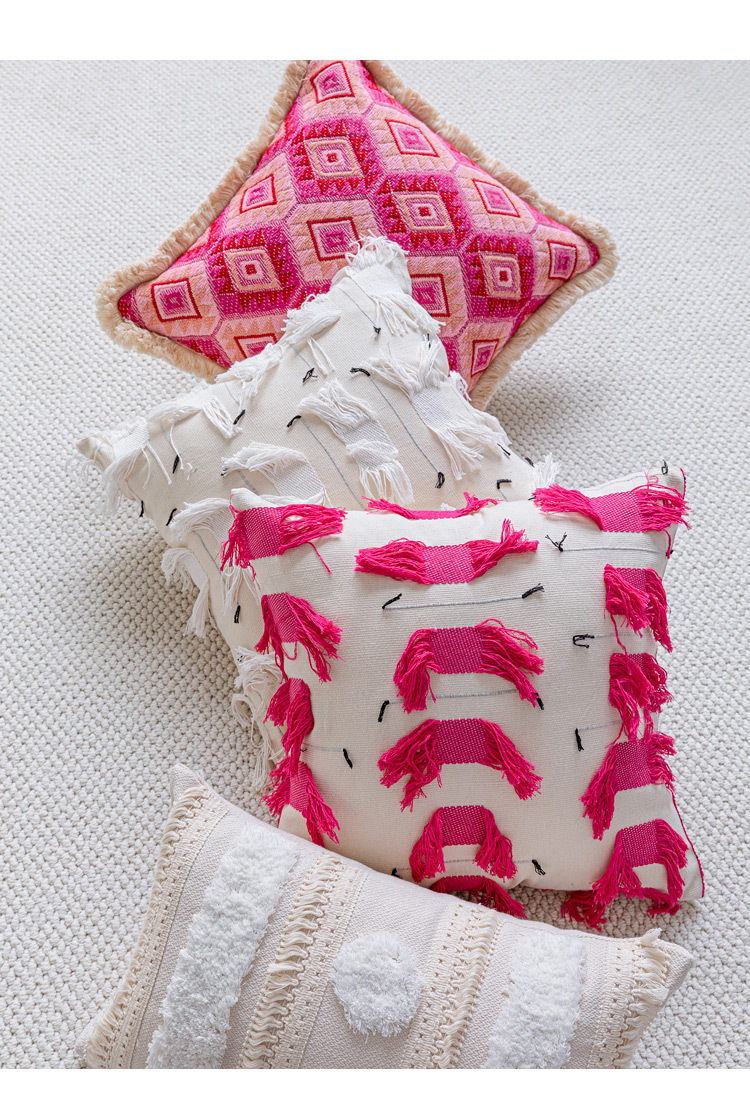 color: Off-white tufted tassel 30*50cm, tassel off-white 45*45cm, cloud velvet off-white 45*45cm, rose red tassel 45*45cm, rose red jacquard 45*45cm