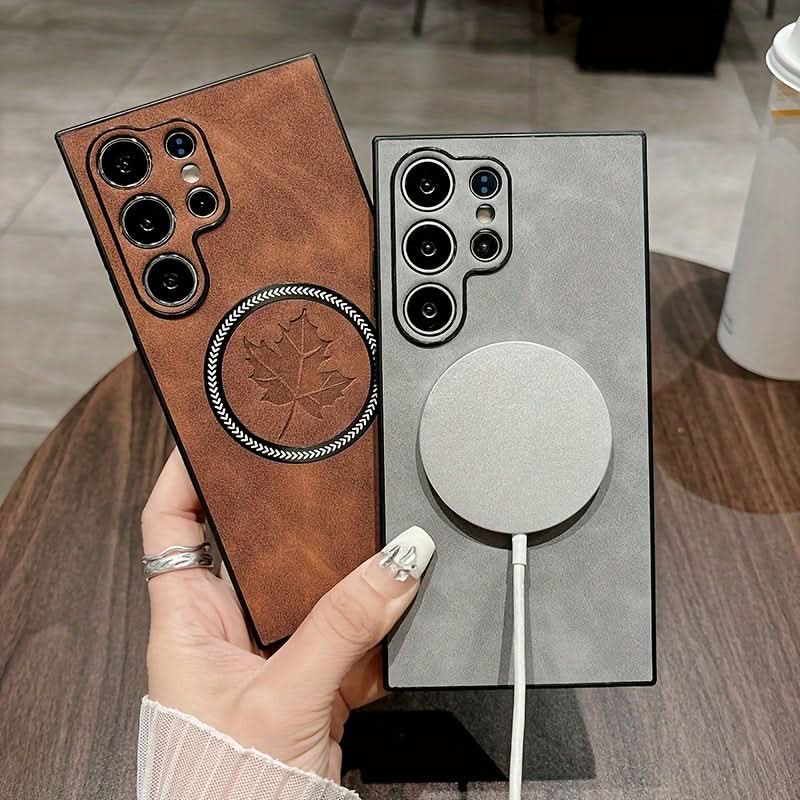 Experience seamless protection and convenience with this MagSafe wireless charging phone case designed for Samsung devices. Crafted from premium faux leather, this case combines style and durability, offering exceptional scratch and drop protection. Its magnetic design ensures effortless alignment with MagSafe chargers and accessories, delivering fast, reliable wireless charging without removing the case. The shockproof construction keeps your phone safe from accidental drops, while precise cutouts ensure easy access to all ports and buttons. Lightweight and slim, it maintains your phone's sleek profile while adding a touch of elegance. Perfect for those seeking functionality and sophistication, this case is a must-have for Samsung users.