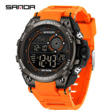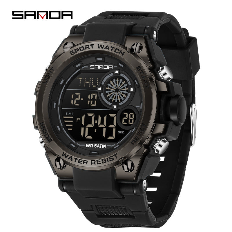 The Sanda Digital Sports Watch is designed for students and active individuals who need a reliable timepiece with a modern edge. Featuring a large digital display, it offers easy readability along with multifunctional features such as dual time zones, countdown timer, stopwatch, hourly chime, alarm, and snooze mode. The luminous function ensures clear visibility in low light, making it perfect for day or night wear. Built with a durable ABS case, TPU strap, and acrylic mirror, this watch is lightweight yet strong enough for everyday use. With 50M water resistance, it’s suitable for sports, outdoor activities, and daily life. Handpicked from Abroad, this stylish waterproof sports watch blends fashion and practicality, making it a great choice for students, athletes, or anyone seeking a versatile digital watch.