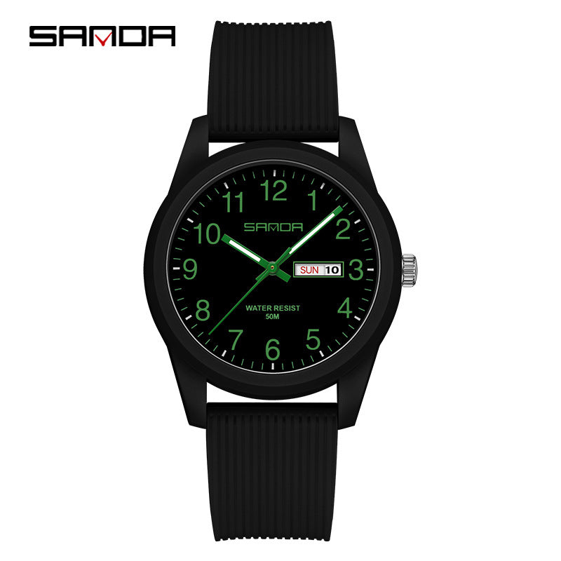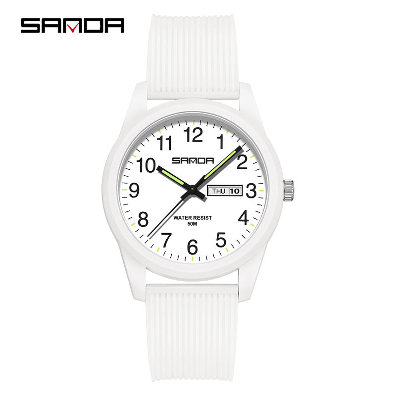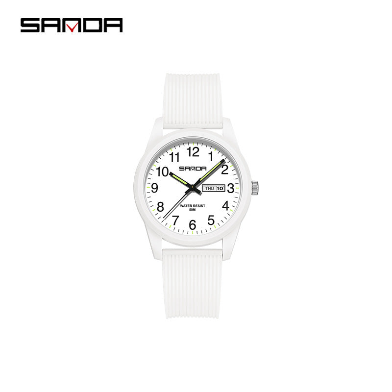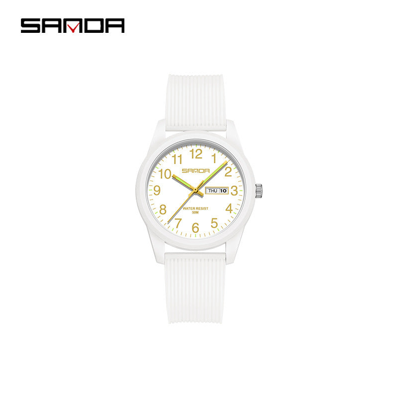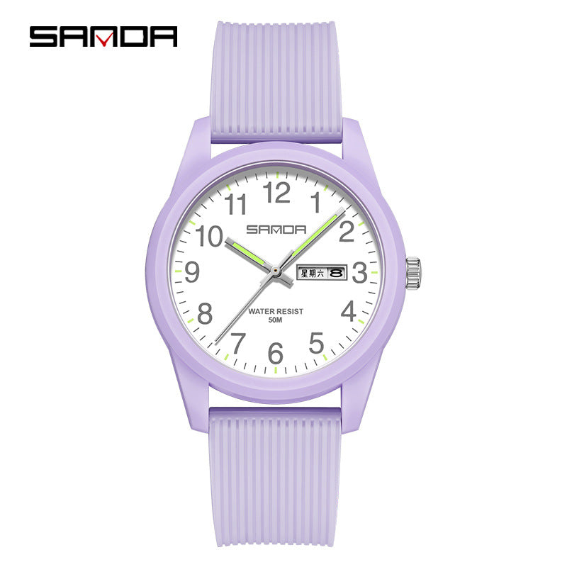 Celebrate time together with the Sanda Dual Calendar Couple Quartz Watch, a stylish and practical pair designed for modern couples. Featuring precise electronic quartz movement and a convenient dual calendar display, it keeps your schedule running smoothly in elegant fashion. The 50M water resistance ensures durability for daily wear, while the TPU strap and mineral glass dial offer comfort and resilience. With matching designs for men and women, this couple’s watch set perfectly blends simplicity with a trendy, fresh look. Ideal for students, professionals, or as a thoughtful gift, it’s built for both style and connection. Sourced from Worldwide Suppliers, this watch duo reflects timeless quality and contemporary charm.