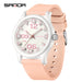 Add a pop of color to your child’s wrist with the Sanda Kids Quartz Watch, a perfect blend of fun style and dependable performance. Designed for students, this waterproof quartz watch features a striking contrast color design that makes it stand out while staying practical for daily use. The 24-hour indicator helps young learners understand time easily, while the 50M water resistance ensures worry-free wear during play or school activities. Its durable ABS case and soft silicone strap offer long-lasting comfort and flexibility for active kids. Handpicked from Abroad, this trendy student watch combines international fashion with everyday functionality — a must-have for young timekeepers who love style and precision.