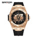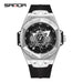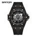 Make a bold statement with the SANDA 7015 Luminous Men’s Quartz Watch, designed for those who appreciate both style and performance. This modern timepiece features a striking 50mm hollow dial with luminous hands for clear visibility in any light. The durable zinc alloy case pairs perfectly with a comfortable silicone strap and adjustable folding buckle for a secure fit. With 30M water resistance, it’s ideal for everyday wear, whether at work or on the go. The built-in calendar function keeps you organized while the high-hardness mineral glass mirror ensures long-lasting clarity. Handpicked from Abroad, this luminous quartz watch combines global craftsmanship with cutting-edge design, making it a must-have for today’s trend-savvy men.