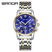Upgrade your professional look with the SANDA Luminous Men’s Quartz Watch 7003, a stylish and functional timepiece designed for modern men. The 44mm round dial features luminous hands, a calendar, small seconds sub-dial, and a 24-hour indicator for precise timekeeping and effortless readability. Crafted with a durable zinc alloy case and a stainless steel strap with a butterfly double snap buckle, it offers both comfort and elegance. With 30M water resistance and a mineral glass mirror, this watch is perfect for daily wear, whether at the office or casual outings. Powered by accurate quartz movement, it combines reliability with a sleek business-casual aesthetic. Handpicked from Abroad, this luminous quartz watch delivers international quality and timeless style to your wrist, making it an essential accessory for men who value both performance and sophistication.