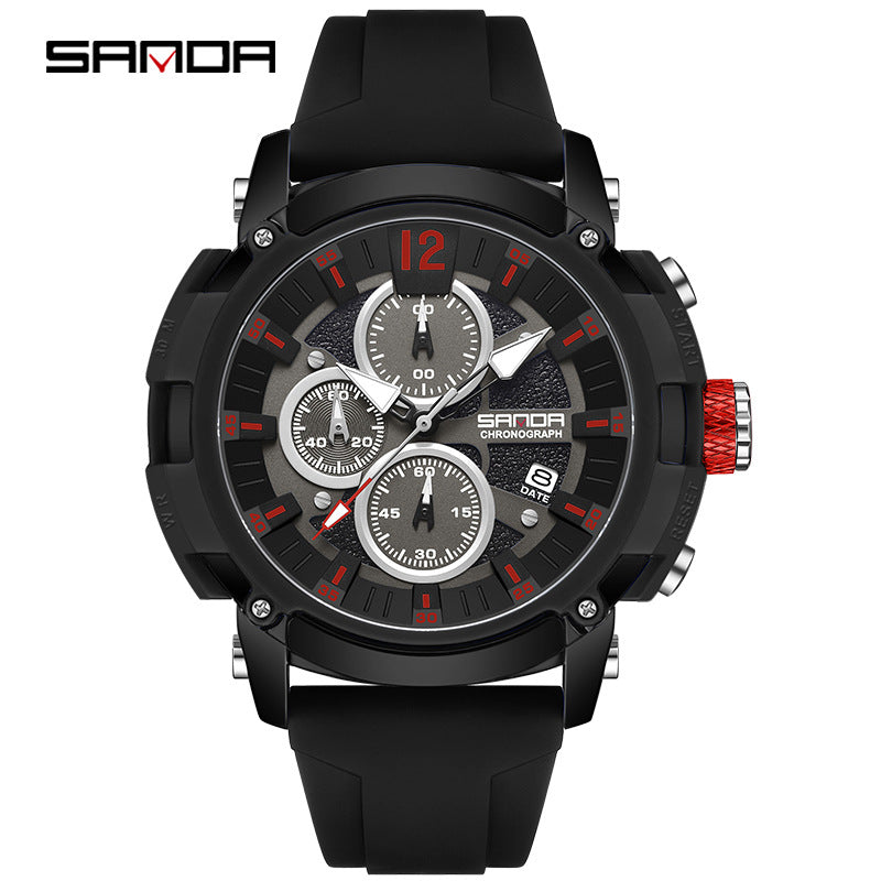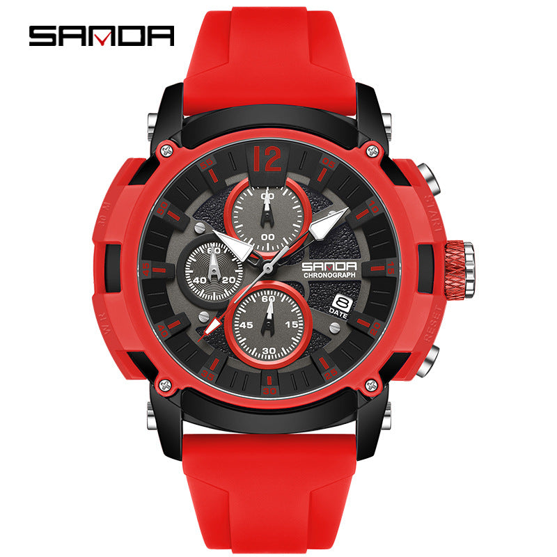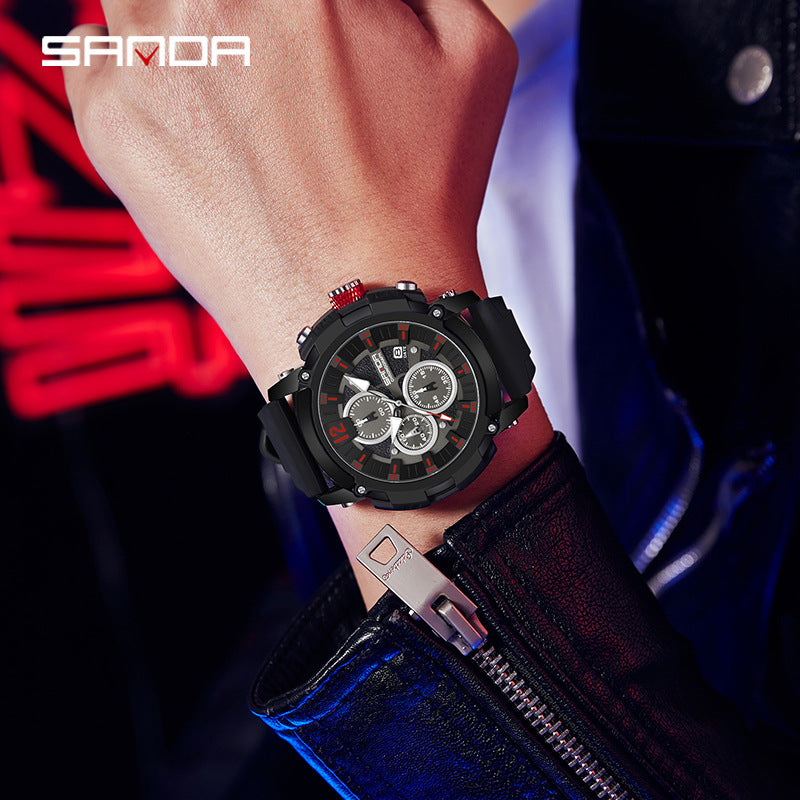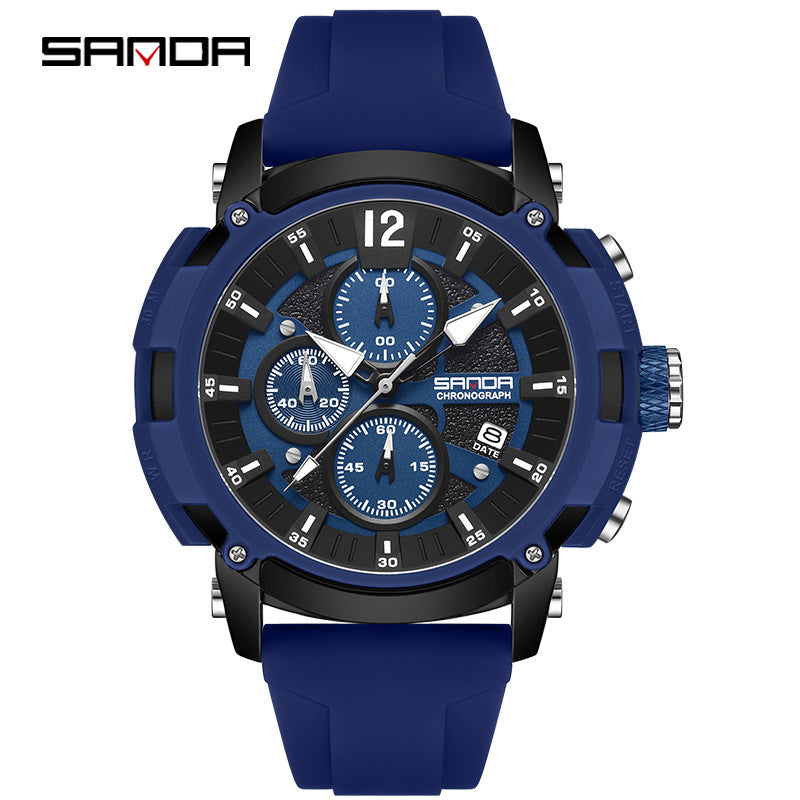 The SANDA Men’s Chronograph Quartz Watch is designed for those who value strength, precision, and modern style. With its three-eye six-pin dial, this timepiece delivers a sophisticated look while offering practical features like a calendar display, small seconds subdial, and luminous hands for easy reading at night. The durable silicone strap ensures all-day comfort, and the 30M water resistance makes it suitable for both daily wear and outdoor activities. Its large 53.7mm dial paired with a rugged zinc alloy and ABS case creates a bold, confident presence on the wrist. The scratch-resistant mineral glass mirror ensures lasting clarity and protection. Sourced from Worldwide Suppliers, this chronograph embodies quality craftsmanship and timeless masculine appeal for every occasion.