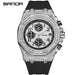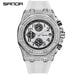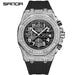 Add a bold touch to your everyday look with the SANDA Men’s Diamond Dial Quartz Watch, a perfect blend of durability and modern style. Featuring a shimmering diamond-accented dial and triple-eye six-hand design, this timepiece offers both elegance and precision. The integrated calendar and small seconds sub-dial keep your schedule in check, while the comfortable TPU silicone strap ensures a secure fit for all-day wear. Its 30M water resistance makes it suitable for daily use and outdoor activities. Built with a high-hardness mineral glass and zinc alloy case, it’s crafted for long-lasting performance. Sourced from Worldwide Suppliers, this men’s quartz watch brings international craftsmanship and effortless sophistication to your wrist.