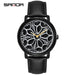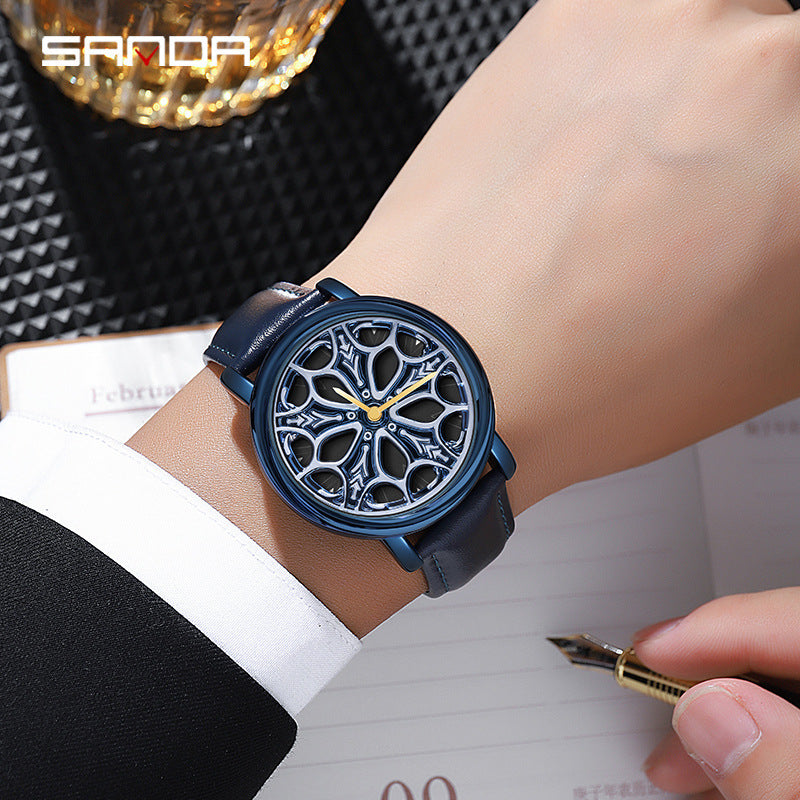 Elevate your everyday style with the Sanda Men’s Leather Quartz Watch, designed for men who appreciate both fashion and function. Featuring a unique rotating floral dial, this watch delivers a modern, eye-catching aesthetic that stands out in any setting. The 42mm round dial is crafted with durable mineral glass, offering scratch resistance and clear visibility. Its genuine leather strap with a secure pin buckle ensures a comfortable, adjustable fit for all-day wear. With 30M water resistance, this watch withstands splashes and rain, making it ideal for casual, work, or social settings. Powered by precise quartz movement, it guarantees reliable timekeeping. Sourced from Worldwide Suppliers, this versatile watch combines distinctive design with practical durability, making it the perfect accessory for men who love subtle yet unique style.