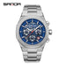 Elevate your professional style with the Sanda Men’s Multifunction Quartz Watch, crafted for men who appreciate precision and elegance. Its bold round dial features a three-eye chronograph with small seconds, 24-hour indicator, calendar function, and luminous hands for easy reading in any light. The hollow stainless steel band adds a modern, sophisticated touch while ensuring durability and comfort. Built with a zinc alloy case and high-hardness mineral tempered glass, this watch resists daily wear and scratches. The flat-top conical crown and butterfly double snap buckle provide a secure and polished finish. With 30M water resistance and reliable quartz movement, it’s perfect for business, casual, or outdoor settings. Handpicked from Abroad, this timepiece combines functionality with style for the modern man.