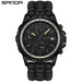 Conquer every adventure with the Sanda Men’s Outdoor Sports Quartz Watch, engineered for men who love both style and functionality. Its bold round dial features a three-eye display with day, calendar, and luminous hands for easy reading in any light. The high-hardness mineral tempered glass and zinc alloy case ensure durability, while the detachable braided strap provides comfort and versatility for outdoor activities. With electronic quartz movement and 50M water resistance, this watch handles splashes, rain, and rugged conditions with ease. The stainless steel buckle adds a secure and stylish finish. Handpicked from Abroad, this multifunctional timepiece perfectly combines sporty design with practical features, making it ideal for mountaineering, hiking, or casual daily wear. A reliable companion for men who seek durability, style, and precision in one watch.