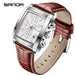 Elevate your professional look with the SANDA Men’s Quartz Square Watch, designed for men who value both style and functionality. This elegant square dial (47.2mm) features a three-eye six-pin design with calendar and small seconds sub-dials, making timekeeping precise and convenient. The luminous hands ensure readability in all lighting conditions, while the durable zinc alloy case and premium leather strap with a pin buckle provide comfort and sophistication. With 30M water resistance, it’s suitable for everyday wear, from office settings to casual outings. Powered by reliable quartz movement and protected with a mineral glass mirror, this watch offers lasting performance and classic style. Handpicked from Abroad, it brings international craftsmanship and quality to your wrist, making it a must-have for the modern gentleman.