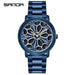 Elevate your everyday style with the Sanda Men’s Quartz Watch, designed for men who appreciate modern, functional timepieces. This watch features a unique rotating dial, giving it a contemporary, standout look that captures attention. The 42mm round dial is safeguarded by durable mineral glass, ensuring scratch resistance and crystal-clear readability. The sleek stainless steel mesh strap is both stylish and comfortable, secured with a reliable double, pin, or butterfly buckle for a perfect fit. With 30M water resistance, it withstands splashes and daily wear effortlessly. Powered by accurate quartz movement, this watch guarantees precise timekeeping. Sourced from Worldwide Suppliers, it combines innovative design with lasting performance, making it an excellent accessory for casual, business, or trendy everyday wear.