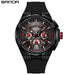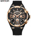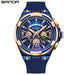 Upgrade your wristwear with the Sanda Men’s Silicone Quartz Watch, a stylish and functional timepiece for modern men. Its bold round dial features a hollow design with a three-eye chronograph, small three-hand display, 24-hour indicator, and calendar function for precise timekeeping. Luminous hands ensure easy readability in any lighting. The soft silicone strap provides all-day comfort, while the zinc alloy case and high-hardness mineral tempered glass deliver durability and a sleek finish. Designed with a flat-top conical crown and stainless steel pin buckle, this watch is secure and refined. With 30M water resistance, it can handle splashes and everyday wear effortlessly. Handpicked from Abroad, this versatile watch blends contemporary style with practicality, making it ideal for business, casual, or outdoor settings.