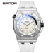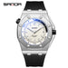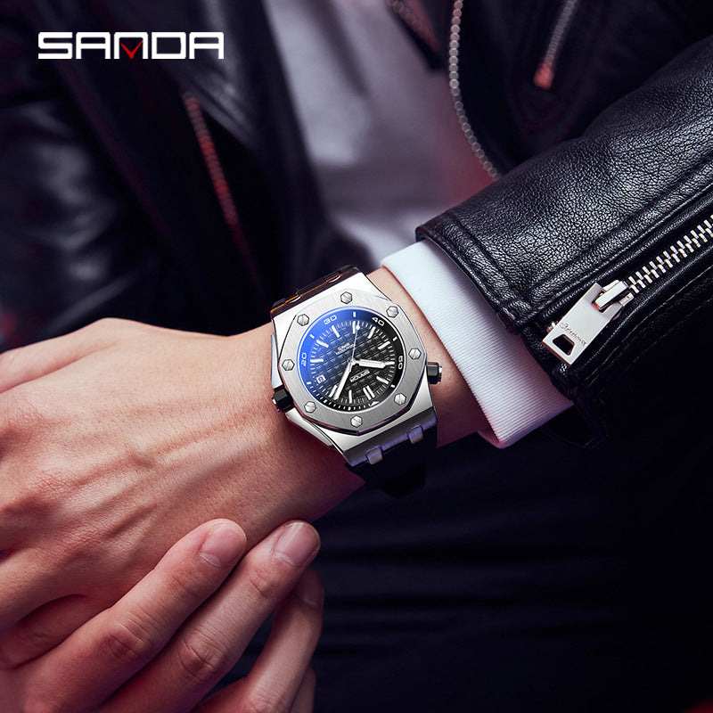 Stay ahead of the style curve with the Sanda Men’s Sports Quartz Watch, crafted for those who value both function and fashion. Featuring a bold three-dimensional checkered dial, this watch combines rugged design with modern sophistication. Its luminous hands and calendar display keep you on time day or night, while the 48mm round case and mineral-reinforced blue glass add durability and clarity. The soft silicone strap ensures a comfortable fit for all-day wear, making it perfect for sports, casual outings, or daily use. With 30M water resistance, it’s ready to handle splashes and light rain with ease. Sourced from Worldwide Suppliers, this men’s quartz watch delivers dependable performance and global-inspired style in one striking package.