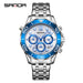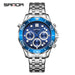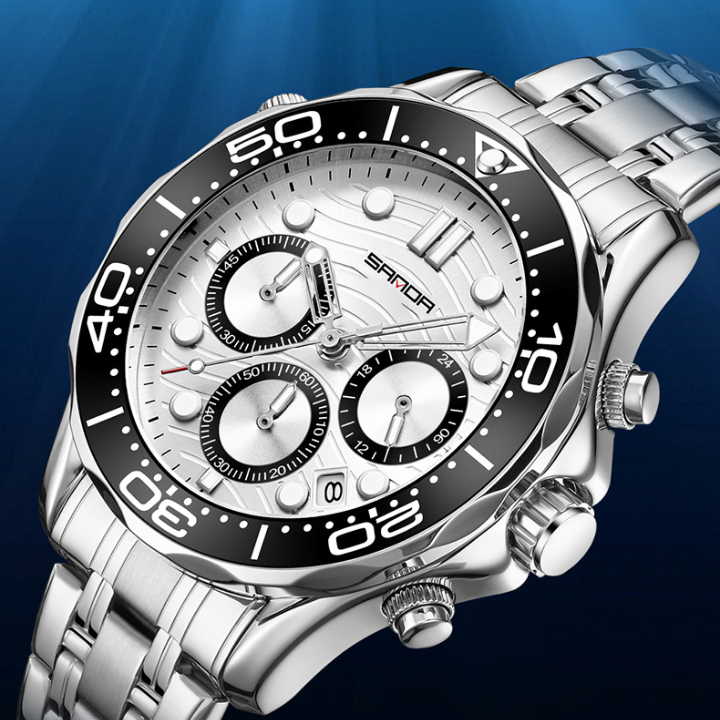 Elevate your professional style with the SANDA Men’s Stainless Steel Quartz Watch, designed for modern men who value elegance and functionality. Featuring a classic round dial with three sub-dials, luminous hands, a calendar display, and small seconds, this watch ensures both precision and sophistication. Crafted with a durable zinc alloy case and high-hardness mineral tempered glass, it resists scratches and daily wear, while the stainless steel strap with double butterfly snap buckle provides a secure, polished fit. With a 46×41mm dial and 12mm thickness, it balances presence and comfort on the wrist. Water-resistant up to 30M, it handles splashes and rain, making it ideal for everyday use. Handpicked from Abroad, this business-style quartz watch combines international craftsmanship with timeless design, offering a versatile accessory for work, events, or casual outings.