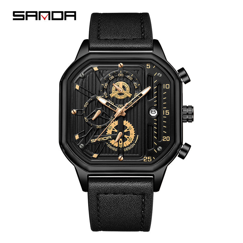 Upgrade your style with the SANDA Men's Leather Square Quartz Watch, a perfect blend of fashion and functionality. Its unique square dial measures 46.4mm × 43mm, providing a bold, modern look, while the small seconds and multifunction six-pin design keep you on schedule with precision. Crafted with a durable zinc alloy case and protected by high-hardness mineral tempered glass, this watch is built to last. The genuine leather strap with a secure pin buckle ensures comfort and sophistication for everyday wear. With 30M water resistance and an integrated calendar, it is ready for both casual and professional occasions. Sourced from Worldwide Suppliers, this watch combines international design inspiration with reliable quartz movement, making it an ideal accessory for men who value style, practicality, and lasting quality. A versatile watch that elevates any outfit effortlessly.