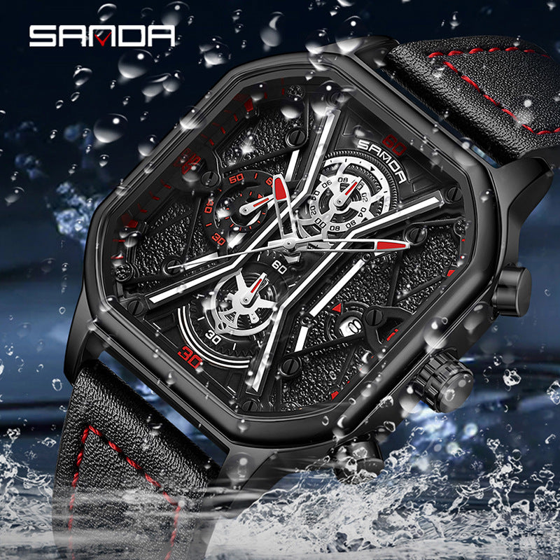 Elevate your style with the SANDA Men's Square Quartz Watch, a perfect blend of sophistication and functionality. Designed for the modern man, this watch features a square dial with luminous hands and a calendar function, making it both stylish and practical. The high-hardness mineral tempered glass protects the dial from scratches, while the durable leather strap ensures all-day comfort. With 30M waterproofing, it’s ideal for daily wear, handling splashes and rain with ease. Powered by a reliable quartz movement, this watch keeps accurate time while adding a touch of elegance to any outfit. Handpicked from Abroad, it brings international quality and contemporary design directly to your wrist. Perfect for casual, business, or outdoor settings, this timepiece is a versatile accessory for men who value both style and performance.
