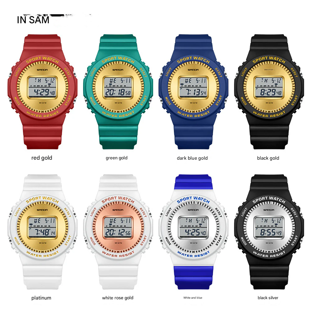 The SANDA Multifunctional Digital Sports Watch is built for students and active lifestyles, offering both style and practicality in one durable design. Featuring multiple functions such as sleep mode, countdown timer, stopwatch, alarm, hourly signal, and a 12/24-hour format, it helps you stay on schedule with ease. The luminous display ensures clear visibility even in low light, while the 50m water resistance provides confidence for daily wear and outdoor activities. Its sturdy ABS case, acrylic mirror, and comfortable TPU strap make it lightweight yet durable enough for everyday use. With a versatile round dial and modern sporty look, this watch is perfect for school, workouts, or casual outings. Sourced from Worldwide Suppliers, the SANDA Digital Sports Watch blends reliability and global style into one must-have accessory.