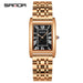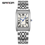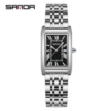 Celebrate timeless style together with the SANDA Retro Square Quartz Couple Watch, designed for fashion-conscious pairs. This elegant analog watch features a classic Roman numeral dial and a slim 8.4mm zinc alloy case, creating a sophisticated look that fits comfortably on both wrists. The stainless steel strap with double butterfly snap buckle ensures a secure, polished fit, while mineral tempered glass provides scratch resistance and durability. With 30M water resistance, it’s perfect for daily wear, rain, or light splashes. The reliable quartz movement guarantees precise timekeeping, making it as functional as it is stylish. Handpicked from Abroad, this unisex fashion watch blends retro charm with modern elegance, making it an ideal gift for couples who value coordination, quality, and international flair.
