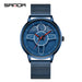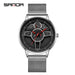 Turn every moment into a statement with the SANDA Steering Wheel Men’s Quartz Watch, a bold timepiece that combines innovation and elegance. Featuring a unique steering wheel dial, this men’s watch captures the essence of modern design and youthful energy. Its durable stainless steel mesh strap offers both comfort and style, while the precise quartz movement ensures accurate timekeeping day after day. With 30M water resistance, it’s built to withstand everyday splashes and adventures. The clear mineral glass mirror enhances visibility, adding a touch of sophistication to your wrist. Sourced from Worldwide Suppliers, this stylish men’s quartz watch delivers global craftsmanship and a distinctive look for business or leisure wear.