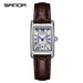 Elevate your everyday style with the Sanda Women’s Square Quartz Watch. Featuring a sleek square dial with classic Roman numerals, this watch brings a sophisticated touch to any outfit. The genuine leather strap offers comfortable wear, while the pin buckle ensures a secure fit for all-day use. Designed with precision quartz movement, it delivers accurate and reliable timekeeping. The high-hardness mineral glass mirror protects against scratches, and the 30M water resistance makes it semi-waterproof, perfect for daily activities and light splashes. Lightweight yet durable, this watch is ideal for casual wear, office looks, or social outings. Handpicked from Abroad, it represents premium international craftsmanship and quality, blending elegance, functionality, and versatility into a timeless accessory.