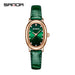 Add a touch of elegance to your everyday look with the Sanda Women’s Leather Quartz Watch. Its sleek oval dial features sparkling diamond accents, delivering subtle luxury and modern style. Equipped with precise quartz movement, this watch ensures accurate timekeeping, while the high-hardness mineral tempered glass and zinc alloy case provide durability and a polished finish. The comfortable leather strap with a secure pin buckle makes it perfect for all-day wear. With 30M water resistance, it easily handles splashes and daily activities. Handpicked from Abroad, this versatile watch is ideal for work, casual outings, or social events. Lightweight yet stylish, it combines timeless design with practical features, making it a must-have accessory for women who value fashion, quality, and functionality in one elegant timepiece.