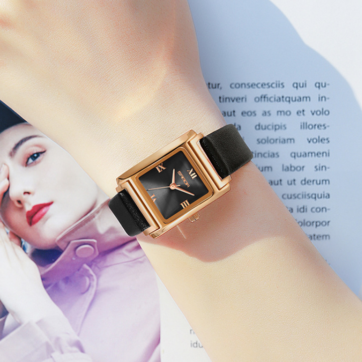 Add a touch of elegance to your everyday style with the Sanda Women’s Leather Quartz Watch. Designed for young women and students, this chic watch features a small square dial with a durable zinc alloy case and clear mineral glass mirror for lasting clarity. The soft leather strap ensures a comfortable fit, secured with a stainless steel pin buckle for reliable fastening. With 30M waterproof performance, it’s perfect for daily wear, including school, work, or casual outings, without worrying about splashes. Its minimalist analog design provides a modern, stylish look that complements any outfit, making it an ideal accessory for those who value both fashion and functionality. Handpicked from Abroad, this versatile quartz watch combines international quality with trendy design, offering a lightweight and durable accessory for everyday use.
