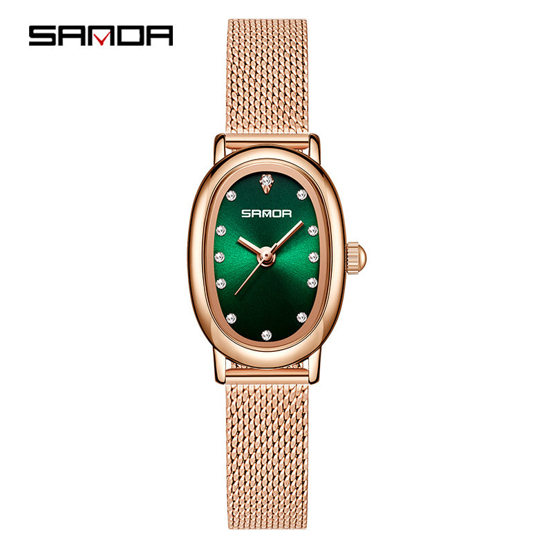 Elevate your everyday elegance with the Sanda Women’s Mesh Quartz Watch, designed for women who appreciate style and versatility. The delicate oval dial features sparkling diamond accents, combining sophistication with a modern touch. Its precise quartz movement ensures accurate timekeeping, while the high-hardness mineral tempered glass and zinc alloy case provide durability and a polished finish. The comfortable mesh stainless steel strap, secured with a double-secure buckle, offers a secure fit and lightweight feel for all-day wear. With 30M water resistance, this watch handles splashes and daily activities effortlessly. Handpicked from Abroad, it’s a versatile accessory perfect for work, casual outings, or social events. A stylish, practical, and elegant timepiece that complements any wardrobe and adds a touch of luxury to everyday life.
