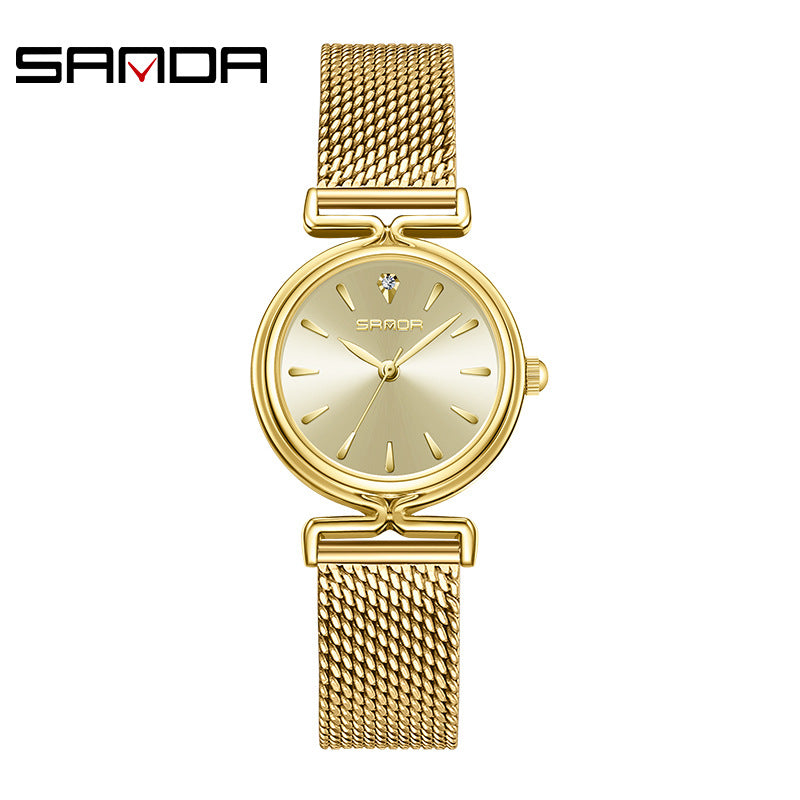 The Sanda Women’s Retro Mesh Quartz Watch brings a touch of timeless style to your daily look. Designed with a classic round dial and minimalist nail markers, it offers elegance that never fades. The fine mesh stainless steel strap provides a modern, breathable fit, while the high-hardness mineral tempered glass ensures lasting durability. Powered by precise quartz movement and protected with 30M water resistance, this watch is as reliable as it is refined. Its sleek zinc alloy case and double-secure clasp add both comfort and confidence to every wear. Handpicked from Abroad, this versatile timepiece pairs effortlessly with casual or professional outfits for a polished finish.