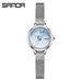 Elevate your everyday look with the SANDA Women’s Quartz Watch, designed for style, comfort, and functionality. Featuring a delicate 26mm round dial with pointer display, this watch offers clear readability while maintaining a minimalist, elegant appearance. The durable zinc alloy case and mesh stainless steel strap with a double guarantee buckle provide a secure and comfortable fit for all-day wear. With 30M water resistance and a mineral reinforced glass mirror, it’s perfect for daily use, including school, work, or casual outings. Lightweight and stylish, this small leisure watch pairs effortlessly with any outfit, making it a versatile addition to your accessory collection. Powered by precise quartz movement, it ensures reliable timekeeping. Handpicked from Abroad, this watch combines international quality with contemporary design, delivering both practicality and sophistication for women.