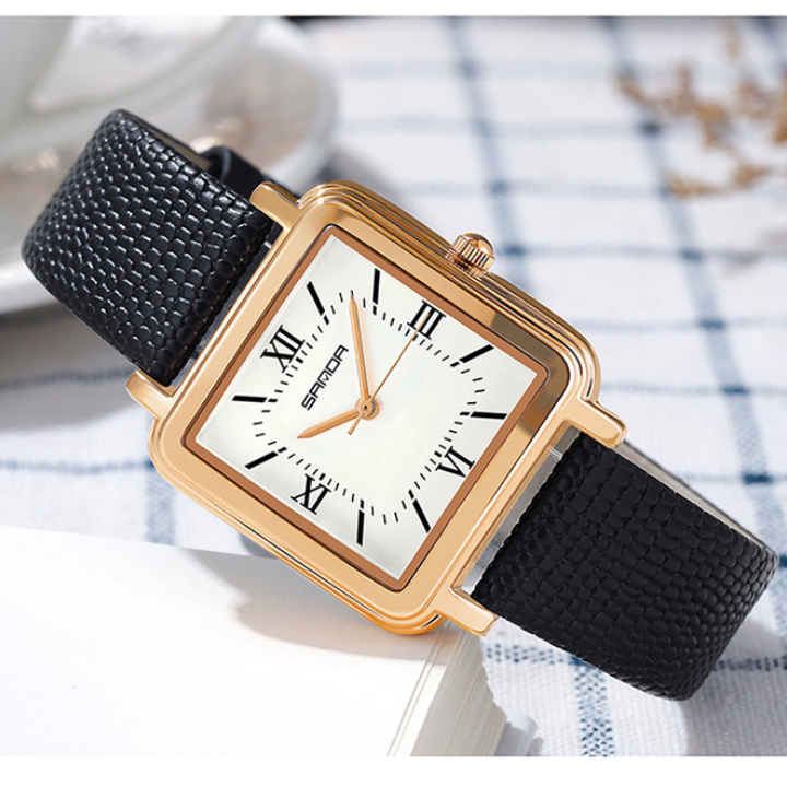 Add a touch of elegance to your everyday style with the SANDA Women’s Square Quartz Watch, designed for casual wear with a sophisticated flair. The 35mm square dial features classic Roman numerals and a minimalist analog display, offering clear readability and timeless style. Crafted with a durable zinc alloy case and premium leather strap with a secure pin buckle, this watch ensures comfort and long-lasting wear. With 30M water resistance and a mineral glass mirror, it’s perfect for daily activities, from work to leisure outings. Lightweight yet stylish, this creative personality watch enhances any outfit effortlessly. Powered by precise quartz movement, it guarantees reliable timekeeping. Handpicked from Abroad, this timepiece combines international quality with modern design, making it an ideal accessory for women who appreciate both fashion and function.