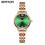 Chic and versatile, the Sanda Women’s Stainless Steel Quartz Watch adds a touch of effortless elegance to your daily style. Designed with a sleek round dial and polished stainless-steel strap, this timepiece combines durability with refined beauty. Its precise quartz movement ensures reliable performance, while the high-hardness mineral glass keeps the face scratch-resistant and clear. With 30M water resistance, it’s perfect for everyday wear, whether you’re at work or out for the evening. The butterfly double-snap buckle ensures a secure, comfortable fit that complements any wrist. Handpicked from Abroad, this stylish ladies’ quartz watch brings global craftsmanship and timeless sophistication together in one beautiful design.