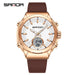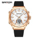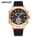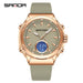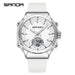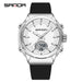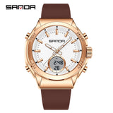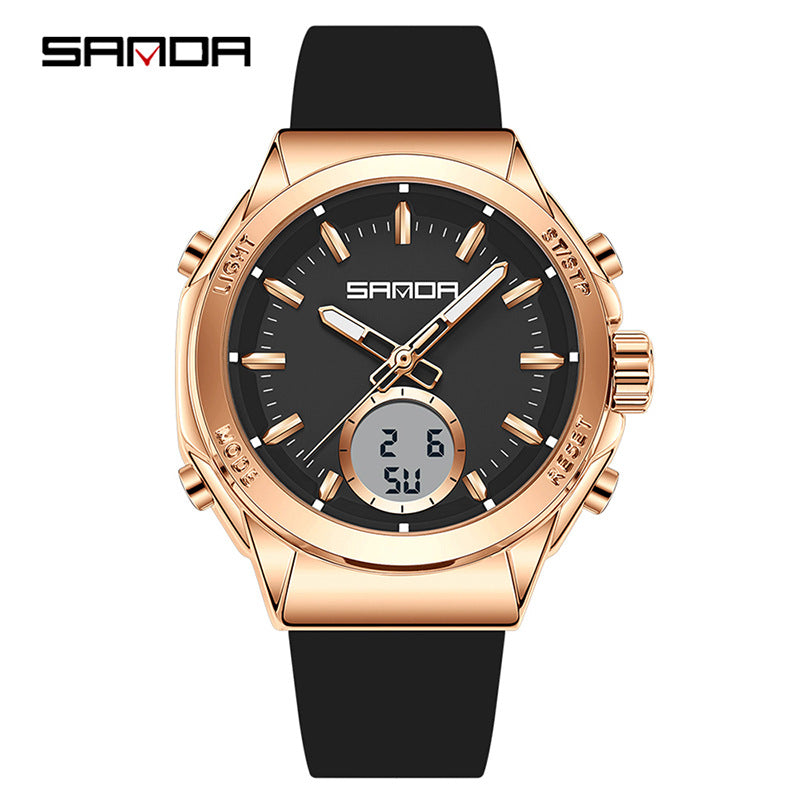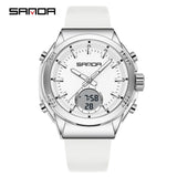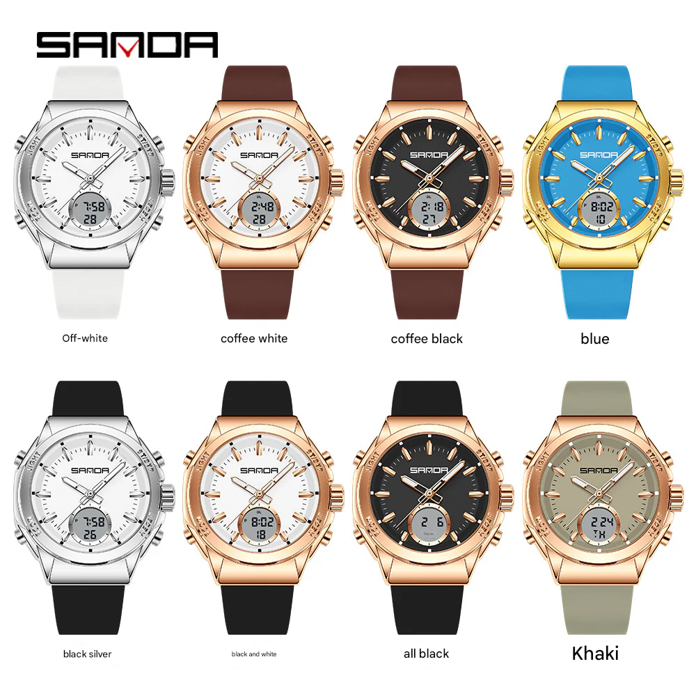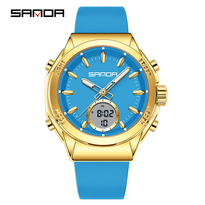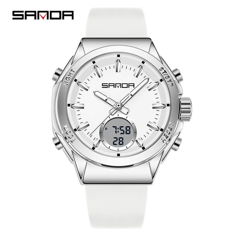 The SANDA Youth Dual Display Sports Watch is a versatile timepiece designed for students who want both style and functionality. Featuring analog + digital dual display, it offers easy readability while supporting three time zones, a stopwatch, daily alarm, and hourly chime. The luminous design ensures clear visibility in low light, while the day and date functions keep you on track. Built with a durable zinc alloy case, mineral tempered glass, and a comfortable silicone strap, this watch balances toughness with comfort. With 30M water resistance, it’s reliable for everyday use and casual sports activities. Handpicked from Abroad, the SANDA Youth Sports Watch delivers international appeal, modern style, and all-in-one functionality—making it the perfect companion for active students.