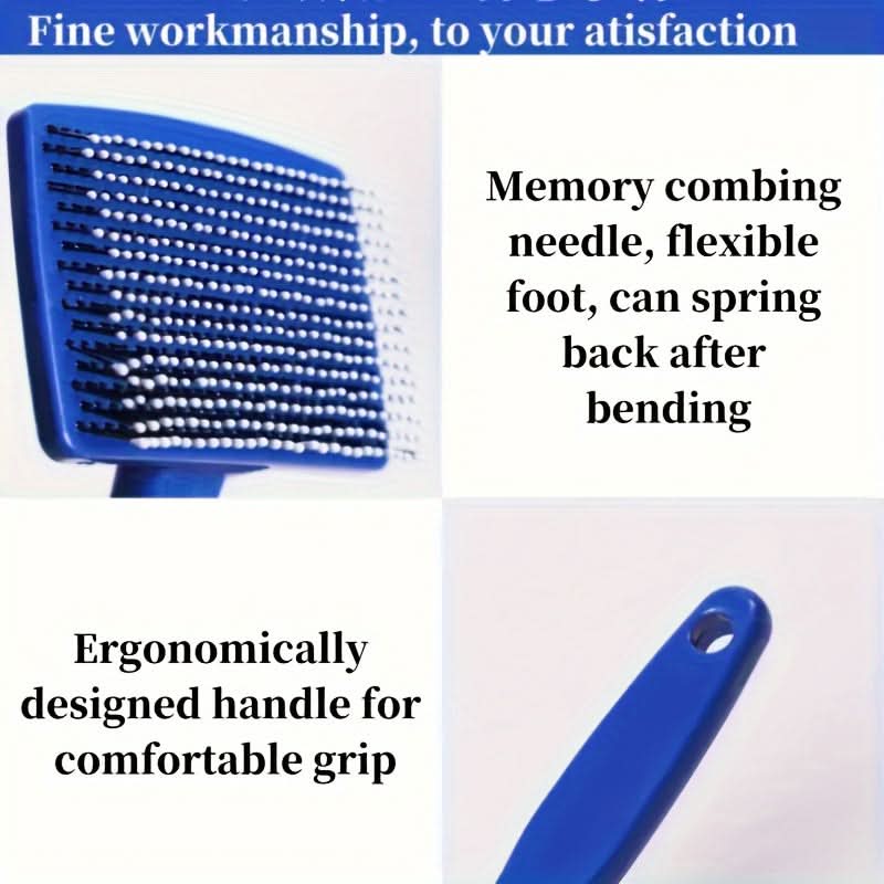 Keep your pet’s coat smooth and tangle-free with this Self-Cleaning Pet Grooming Comb. Perfect for both dogs and cats, this professional-quality grooming tool features durable pins that effectively remove loose hair, detangle knots, and reduce shedding. Made from sturdy TPU material, it’s lightweight and easy to handle, making grooming sessions stress-free for both you and your pet. The self-cleaning design ensures quick and mess-free maintenance—simply press the button to release collected fur. This comb is ideal for pets with all coat types, from long-haired breeds to short-haired companions. Whether you're tackling mats or maintaining a shiny, healthy coat, this versatile grooming brush is an essential tool for home pet care. Give your furry friend the comfort they deserve while keeping your home fur-free with this must-have grooming accessory!