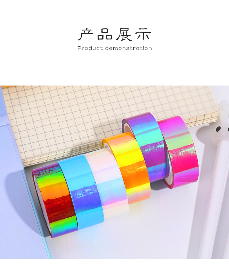 Elevate your notebook and craft projects with this Set of 6 Waterproof Gradient Washi Tapes! Featuring a stunning array of cool colors and a unique laser gradient design, these tapes are perfect for adding a creative touch to your stationery collection. Each roll is 5 meters long, 1.5 cm wide, and 0.5 mm thick, providing plenty of tape for all your decorating needs.