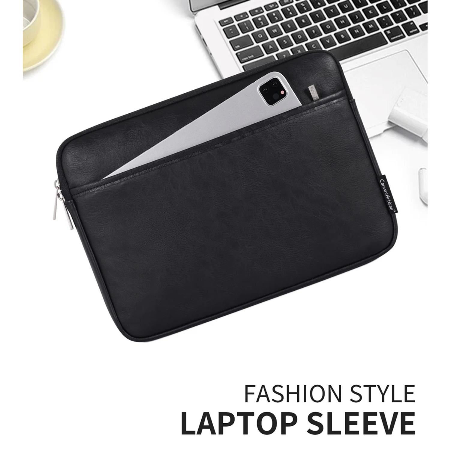 Protect your tech with this sleek, shockproof PU leather laptop sleeve – designed to fit Apple and Huawei laptops from 13.3" to 16.2". Featuring a minimalist plain leather look in classic black, it combines style with functionality. The dual-compartment interior—one zippered and one slip pocket—keeps your device and accessories organized on the go. With a soft polyester lining and durable construction, this sleeve offers lightweight yet reliable earthquake resistance, making it ideal for travel or daily commutes. Its slim profile fits easily into backpacks or briefcases without bulk.