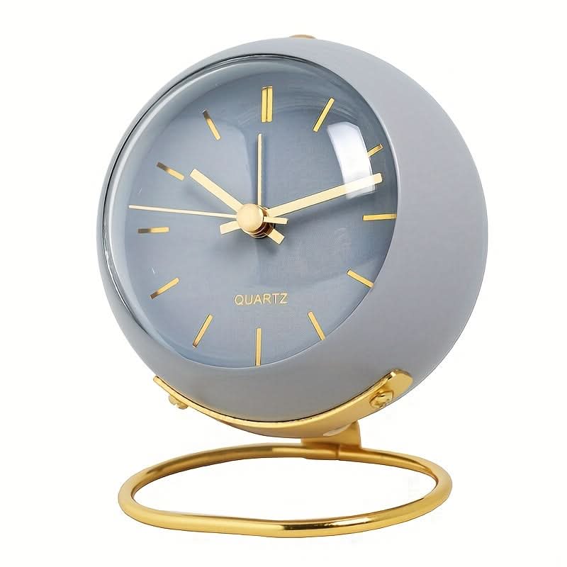 Enhance your space with this silent Nordic desk clock, designed for both functionality and style. Featuring a sleek metal frame and a minimalist round design, this battery-operated alarm clock is perfect for bedrooms, offices, dorm rooms, and study areas. The silent, non-ticking mechanism ensures a peaceful environment, making it ideal for light sleepers and focused workspaces. The luminous hands provide easy readability at night, while its compact and elegant design complements modern, Scandinavian, and minimalist decor. Whether you need a reliable desk clock for students, professionals, or home decor enthusiasts, this stylish piece adds a touch of sophistication to any room. A perfect gift idea for birthdays, housewarmings, and holidays, this Nordic-inspired alarm clock blends practicality with timeless aesthetics.