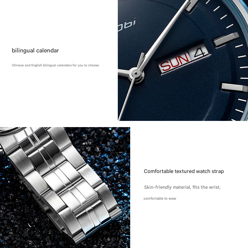 The luminous hands and clear pointer display allow easy reading in all lighting conditions, while the integrated calendar and day-of-the-week display keep you organized at a glance. Its 30M water resistance adds practicality for everyday wear.