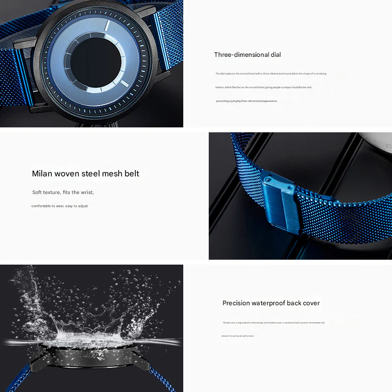 Its flat-top conical crown and mineral-reinforced glass mirror complete the sophisticated look. Lightweight yet eye-catching at just 8.6mm thick, it's the ideal statement accessory for creative professionals and style-savvy individuals.