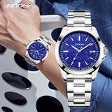 Elevate your professional look with the Sinobi Men's Stainless Steel Quartz Watch, designed for those who value precision and refined style. This business watch features a durable solid stainless steel strap, luminous pointer display, and a sleek 40mm alloy case that exudes sophistication.