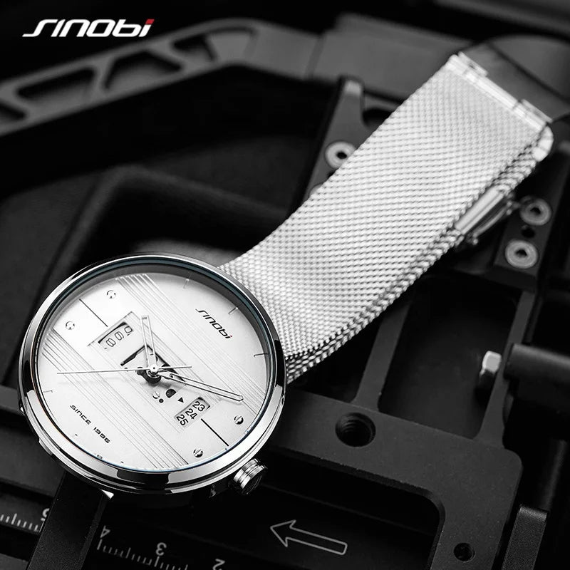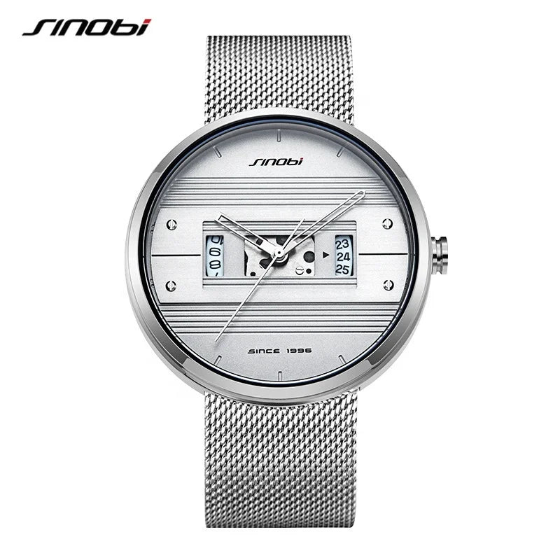 Designed for the modern man, the SINOBI S9825G men's sports quartz watch combines style, strength, and precision. Its 44mm round dial with mineral glass ensures durability, while the polished stainless steel strap offers a sleek, professional look.