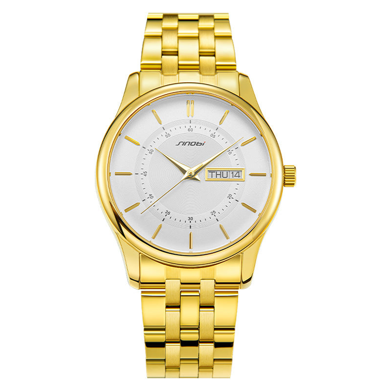 Its stainless steel strap and single folding clasp offer durability and a polished finish suitable for formal or casual wear. The clear pointer display includes a practical day-of-the-week feature for added convenience.