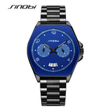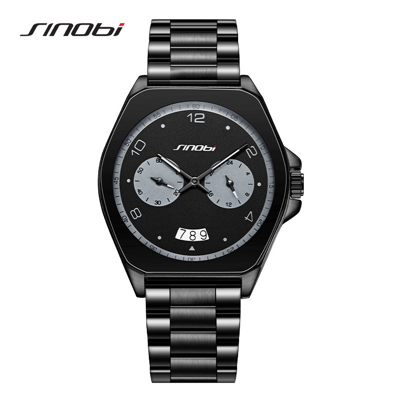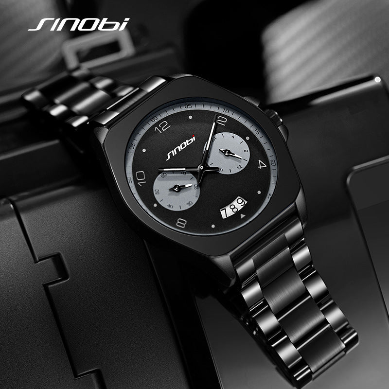 The solid stainless steel strap paired with a butterfly double snap button offers a secure and polished fit, while the 30M water resistance ensures durability in daily settings. Equipped with a calendar, luminous hands, and small three-pin movement, this timepiece blends classic design with practical features.