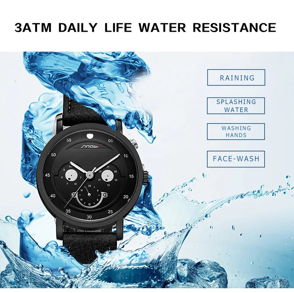 Elevate your wrist game with this luxury chronograph men's watch, designed for both performance and style. Featuring a 40.5mm round alloy case and sleek PU leather strap, this timepiece offers a refined sports design ideal for daily wear or formal occasions.