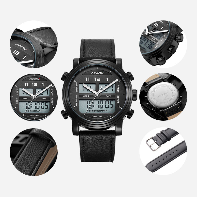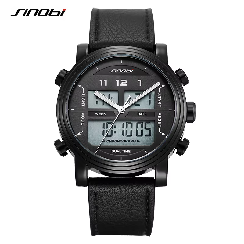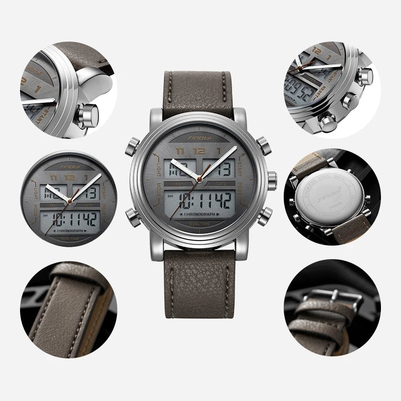 Elevate your everyday look with the Sinobi S9824G Men's Quartz Watch, where timeless style meets modern function. Designed with a soft leather band and a bold 43mm round dial, this chronograph timepiece offers practical features like a calendar, day/date display, and built-in alarm.