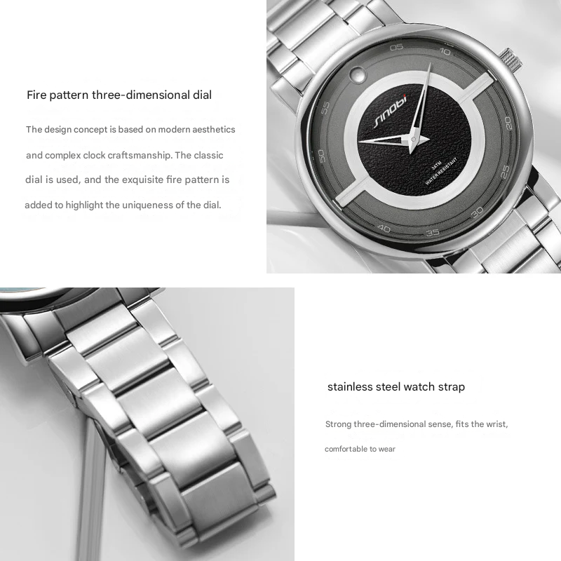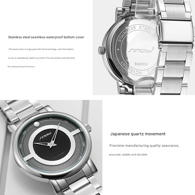 Refined, reliable, and ready for every occasion—the Sinobi Men's Quartz Business Watch offers a sleek combination of form and function. Its ultra-slim 6.5mm stainless steel case and matching strap lend a clean, modern aesthetic, while the 39mm dial provides a comfortable fit for everyday wear.
