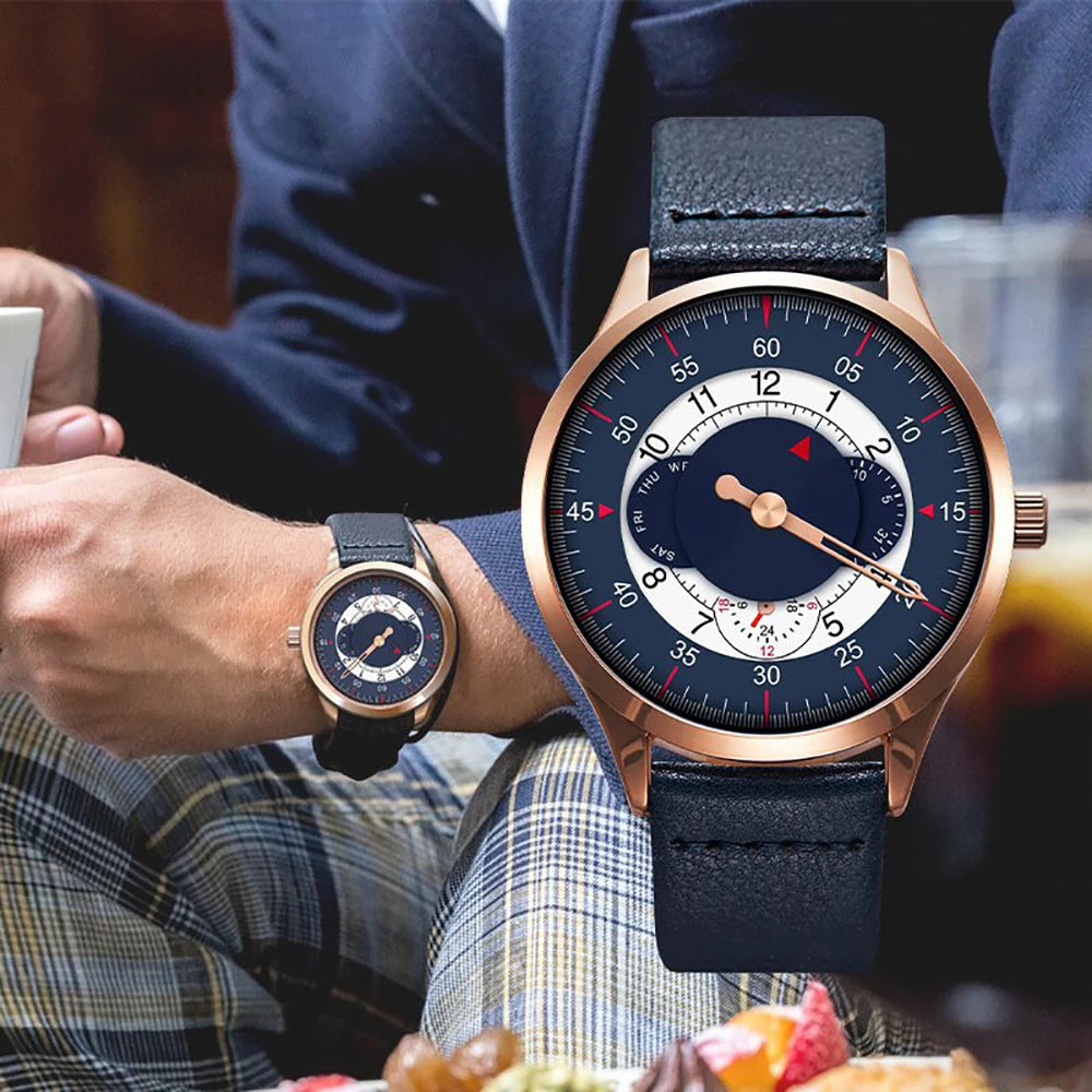 Add a bold statement to your wrist with this high-quality men's waterproof quartz watch, expertly crafted for both function and flair. The 42mm round dial, encased in durable alloy, features a mineral-reinforced glass mirror for scratch resistance and lasting clarity.