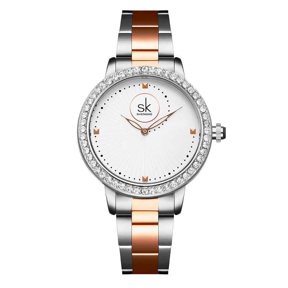 Elevate your everyday look with the SHENGKE Women’s Quartz Watch, crafted for those who appreciate elegance with a modern touch. The standout diamond-style frame encasing the 36mm round dial adds a luxurious detail, while the slim 10mm alloy case keeps it comfortable on the wrist. Its stainless steel strap with a secure folding clasp brings both durability and sophistication, making it perfect for business wear or polished casual outfits. The reliable quartz movement ensures precise timekeeping, while 30M water resistance and a sturdy screw-down crown offer confidence for daily use. Finished with a clear glass mirror and refined design, this watch balances fashion and functionality effortlessly. Handpicked from Abroad, it’s a chic accessory that complements professional style while remaining versatile enough for every occasion.