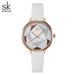 Step into modern style with the Shengke Women’s Quartz Watch, a perfect balance of fashion and function. Designed with a unique geometric dial and faceted mineral glass, this timepiece catches the light beautifully, adding a subtle sparkle to your everyday look. Its 30mm round case and slim 8mm profile make it lightweight and comfortable, while the genuine leather strap ensures a secure yet stylish fit. Powered by reliable quartz movement, it guarantees accurate timekeeping for work, study, or leisure. With 30M water resistance, it can withstand daily splashes, making it both practical and chic. Handpicked from Abroad, this watch blends global design trends with timeless elegance—an ideal accessory for women who love versatile fashion pieces. Whether for yourself or as a thoughtful gift, the Shengke Geometric Watch is a standout choice.