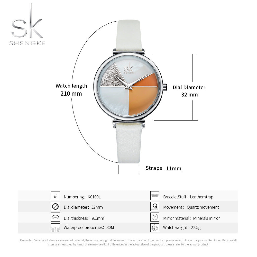 Add sparkle to your everyday style with the SHENGKE Women’s Quartz Watch, designed for women who love a touch of glamour. Featuring a dazzling glitter shell dial within a 32mm round case, this timepiece offers a unique blend of elegance and modern fashion. The slim 9mm alloy case paired with a comfortable PU leather strap makes it lightweight and versatile for daily wear. With 30M water resistance, a durable mineral glass mirror, and a secure stainless steel pin buckle, it’s built to last while keeping you stylish. Powered by precise quartz movement, it ensures reliable timekeeping wherever life takes you. Its chic design makes it perfect for both casual looks and special occasions. Handpicked from Abroad, this fashion-forward watch is a must-have accessory for every woman’s collection.